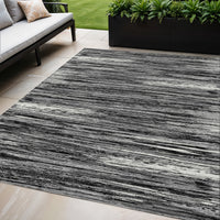 5' X 8' Black And Ivory Striped Washable Indoor Outdoor Area Rug