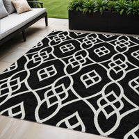 5' X 8' Black And Ivory Trellis Washable Indoor Outdoor Area Rug