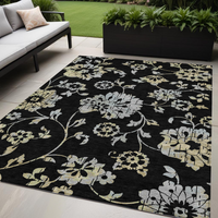 5' X 8' Black Artichoke Green And Silver Floral Washable Indoor Outdoor Area Rug