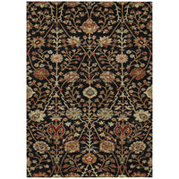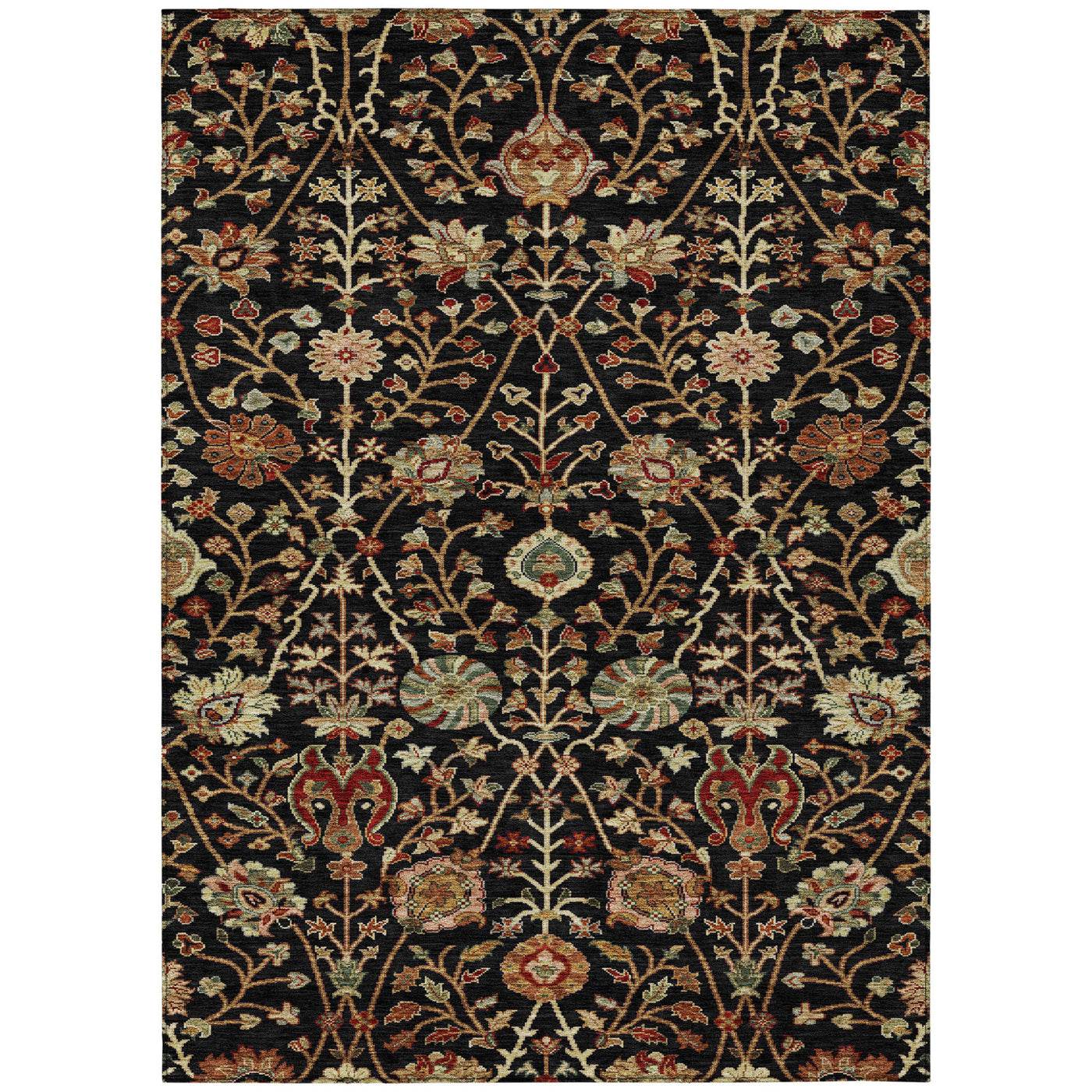 5' X 8' Black Brown And Red Floral Washable Indoor Outdoor Area Rug