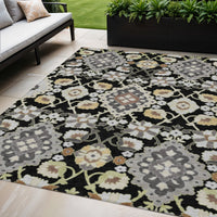 5' X 8' Black Gray And Brown Oriental Washable Indoor Outdoor Area Rug