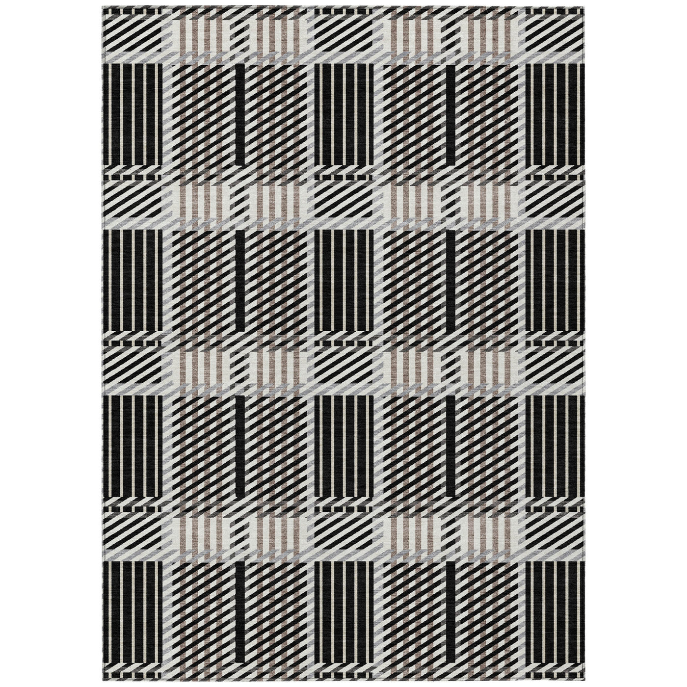 5' X 8' Black Gray And Brown Plaid Washable Indoor Outdoor Area Rug