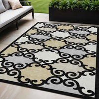 5' X 8' Black Gray And Ivory Trellis Washable Indoor Outdoor Area Rug