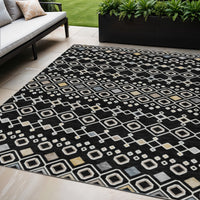 5' X 8' Black Ivory And Blue Geometric Washable Indoor Outdoor Area Rug