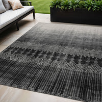 5' X 8' Black Ivory And Gray Ombre Washable Indoor Outdoor Area Rug