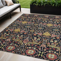 5' X 8' Black Red And Gold Floral Washable Indoor Outdoor Area Rug