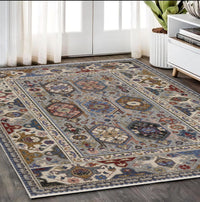 5' X 8' Blue And Gray Oriental Area Rug With Fringe