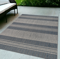 5' X 8' Blue And Gray Striped Stain Resistant Indoor Outdoor Area Rug