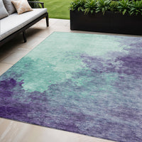 5' X 8' Blue And Purple Abstract Washable Indoor Outdoor Area Rug
