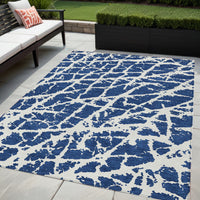 5' X 8' Blue And White Abstract Washable Non Skid Indoor Outdoor Area Rug