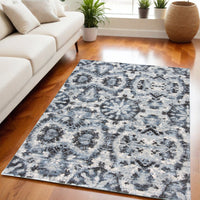 5' X 8' Blue Black and Ivory Ikat Power Loom Area Rug