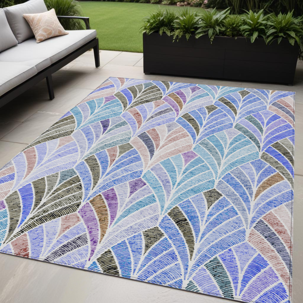 5' X 8' Blue Brown And Purple Geometric Washable Indoor Outdoor Area Rug