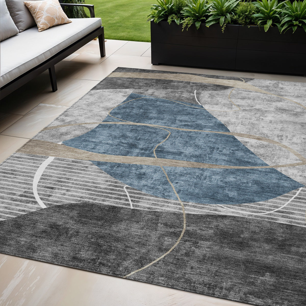 Add some artistry to your room with this 5-foot x 8-foot blue gray and charcoal abstract washable indoor outdoor area rug. This rectangle shaped rug features a abstract design that will work well both indoors or out. A classic shape marries with good looking design for your living room, hall, bedroom, porch, patio, or poolside. Ideal for outdoor spaces or high traffic areas with kids and pets, this rug is made from heavy duty polyester that is stain resistant to help repel water, dirt, and stains. Versatile in use, durable, and easy to maintain, this rug is an ideal solution to add a decorative and inviting touch to your indoor or outdoor space. 60-inch h x 90-inch w x 0.19-inch d.