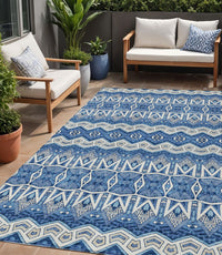 5' X 8' Blue Gray And Ivory Moroccan Washable Indoor Outdoor Area Rug