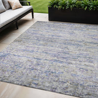 5' X 8' Blue Gray And Purple Striped Washable Indoor Outdoor Area Rug