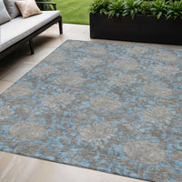 5' X 8' Blue Gray And Silver Floral Washable Indoor Outdoor Area Rug