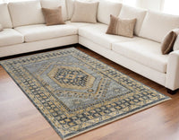 5' X 8' Blue Gray and Tan Wool Oriental Hand Knotted Area Rug With Fringe