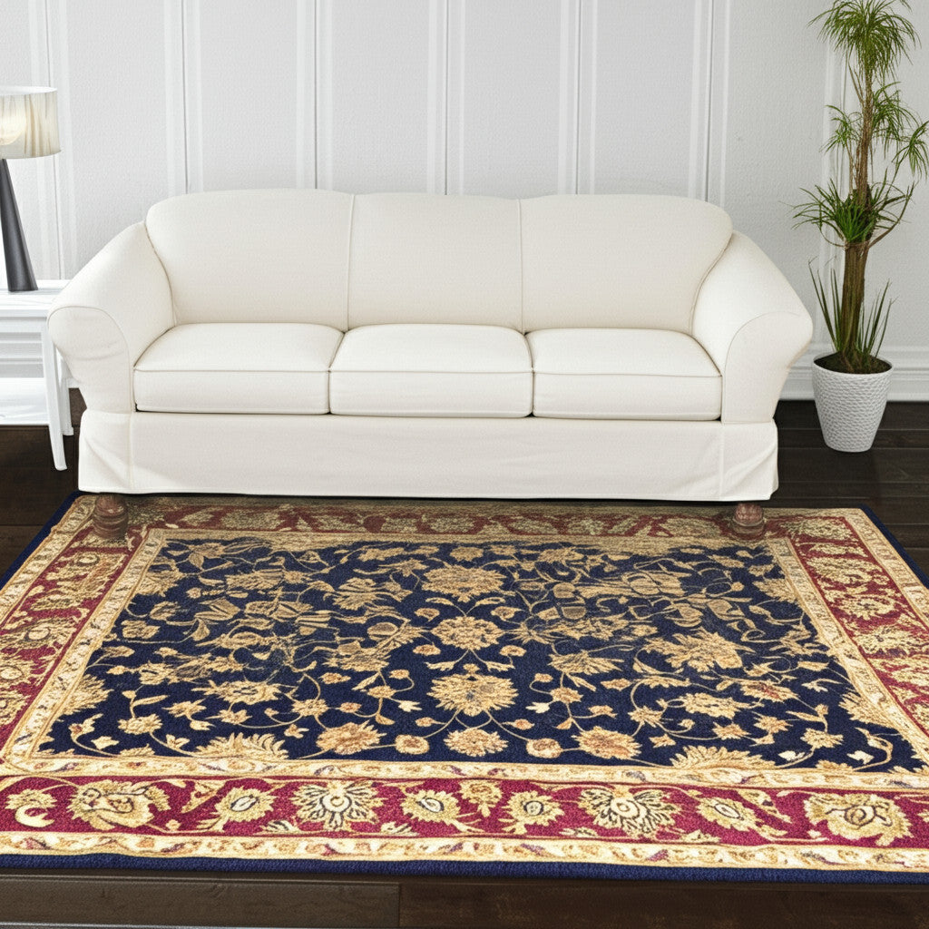 5' X 8' Blue Red And Gold Oriental Hand Tufted Area Rug