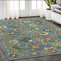 Add great coloration and comfortable texture to your space with this 5-foot x 8-foot blue oriental power loom area rug with fringe. This rectangle shaped rug features a oriental design in blue to give it visual interest. A classic shape marries with good looking design for your space ideal for spaces with kids and pets, this rug is stain resistant to help repel stains and spilled liquids. Tassel ends bring a timeless and fashionable look to your interior. Area rugs help to give warmth and sense of home to your space. 62.99-inch H x 92.52-inch W x 0.32-inch D