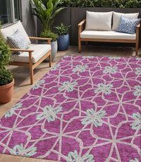 5' X 8' Blush And Aqua Geometric Washable Indoor Outdoor Area Rug