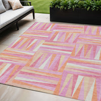 5' X 8' Blush Ivory And Orange Geometric Washable Indoor Outdoor Area Rug
