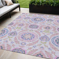 5' X 8' Blush Lavender And Purple Floral Washable Indoor Outdoor Area Rug