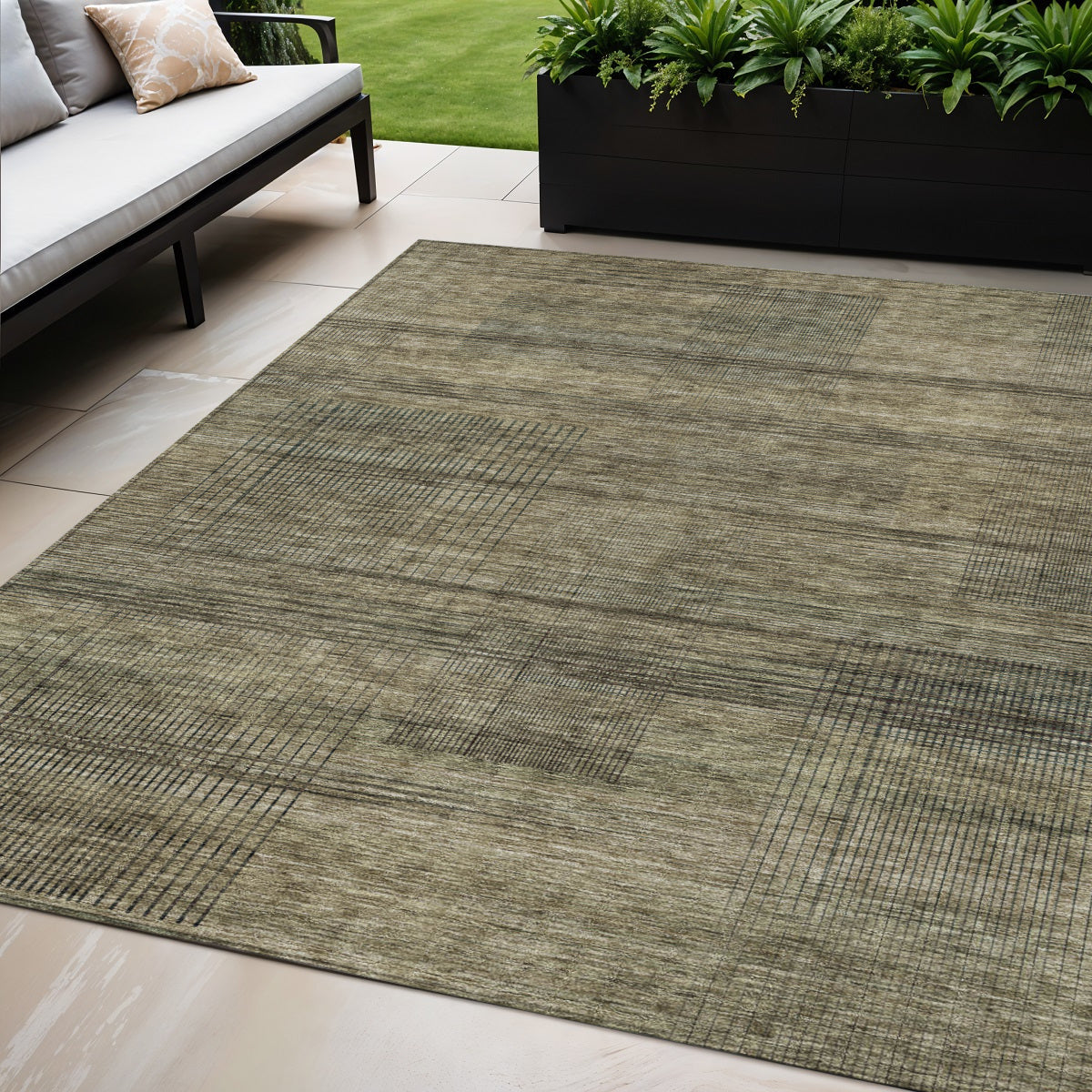 This 5-foot x 8-foot brown beige and taupe striped washable indoor outdoor area rug, is a great way to add warmth to a room. This rectangle shaped rug features a striped design that will work well both indoors or out. A classic shape marries with good looking design for your living room, hall, bedroom, porch, patio, or poolside. Ideal for outdoor spaces or high traffic areas with kids and pets, this rug is made from heavy duty polyester that is stain resistant to help repel water, dirt, and stains. Versatile in use, durable, and easy to maintain, this rug is an ideal solution to add a decorative and inviting touch to your indoor or outdoor space. 60-inch h x 90-inch w x 0.19-inch d.