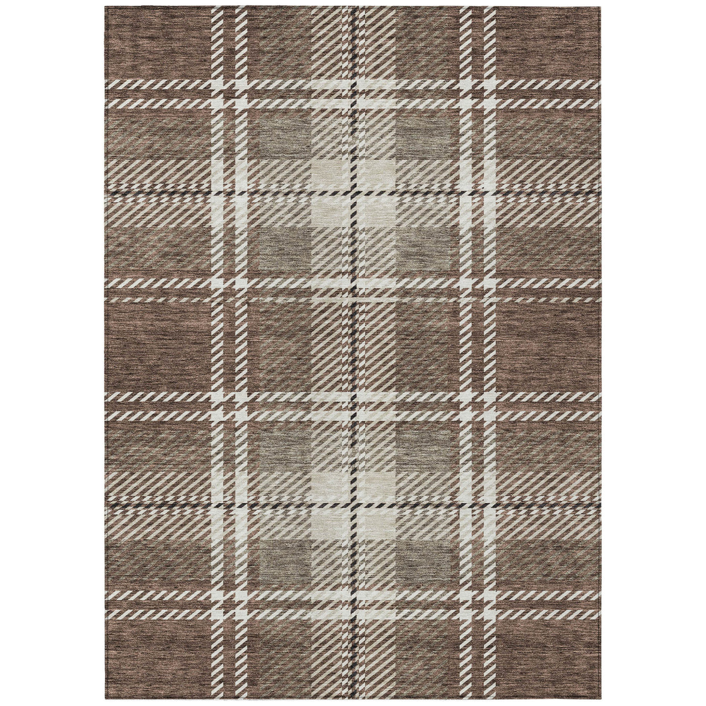 5' X 8' Brown Black And Ivory Plaid Washable Indoor Outdoor Area Rug