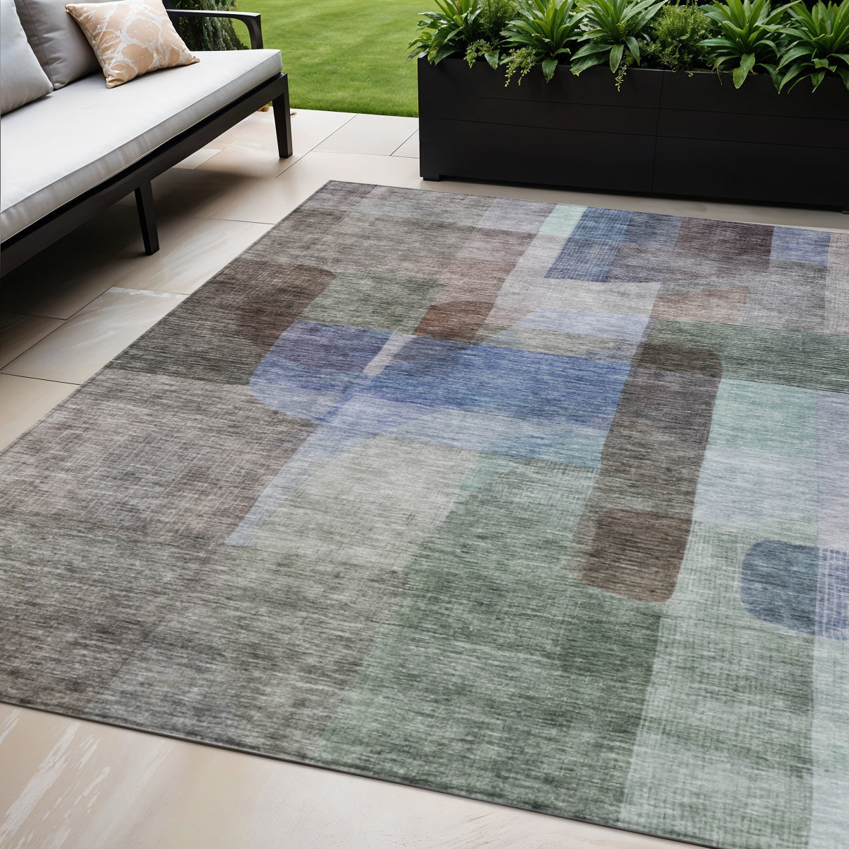 Set an inviting tone in your space with this 5-foot x 8-foot brown green and blue abstract washable indoor outdoor area rug. This rectangle shaped rug features a abstract design that will work well both indoors or out. A classic shape marries with good looking design for your living room, hall, bedroom, porch, patio, or poolside. Ideal for outdoor spaces or high traffic areas with kids and pets, this rug is made from heavy duty polyester that is stain resistant to help repel water, dirt, and stains. Versatile in use, durable, and easy to maintain, this rug is an ideal solution to add a decorative and inviting touch to your indoor or outdoor space. 60-inch h x 90-inch w x 0.19-inch d.