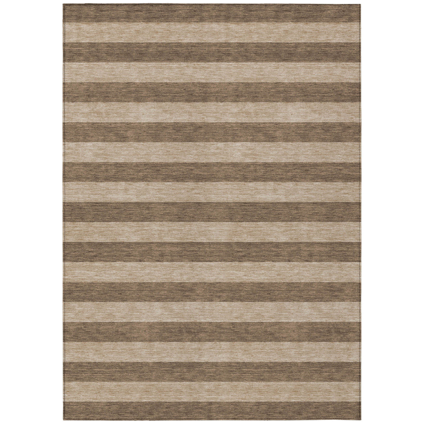 5' X 8' Coffee Striped Washable Non Skid Indoor Outdoor Area Rug
