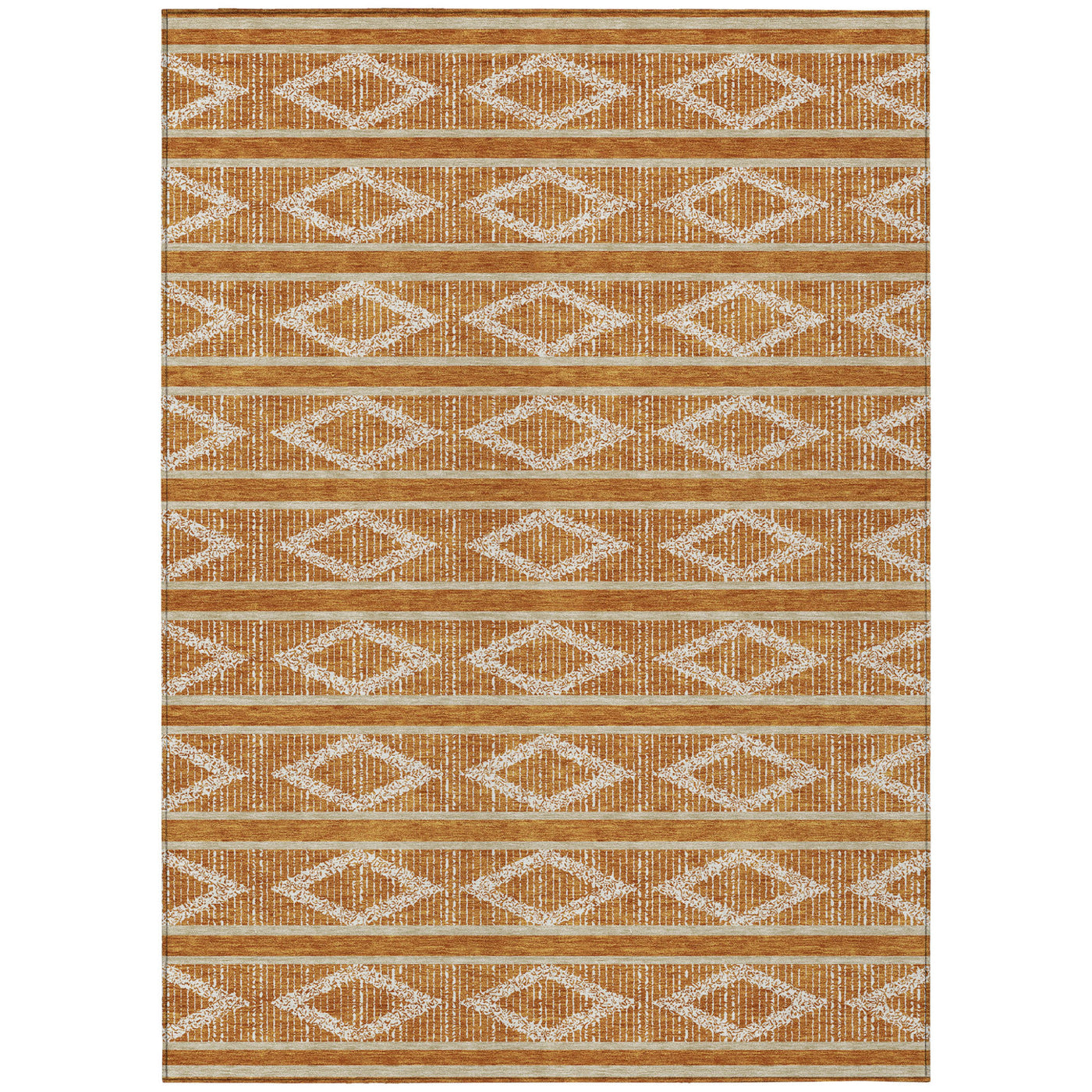This 5-foot x 8-foot copper and ivory geometric washable indoor outdoor area rug, is a great way to add warmth to a room. This rectangle shaped rug features a geometric design that will work well both indoors or out. A classic shape marries with good looking design for your living room, hall, bedroom, porch, patio, or poolside. Ideal for outdoor spaces or high traffic areas with kids and pets, this rug is made from heavy duty polyester that is stain resistant to help repel water, dirt, and stains. Makes a great way to dress up your patio, porch, or poolside, but also works well as a durable and easy to maintain option in the kitchen, family room, or mudroom. 60-inch h x 90-inch w x 0.19-inch d.