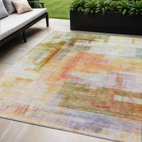 5' X 8' Coral Blue And Green Abstract Washable Indoor Outdoor Area Rug