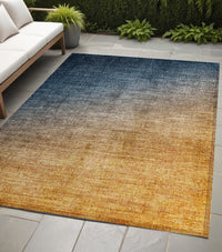 5' X 8' Denim And Gold Ombre Washable Non Skid Indoor Outdoor Area Rug