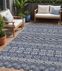 5' X 8' Denim Blue And Ivory Moroccan Washable Indoor Outdoor Area Rug