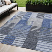 5' X 8' Denim Blue And Navy Blue Striped Washable Indoor Outdoor Area Rug
