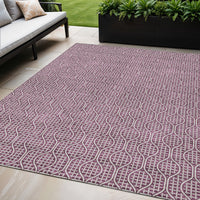 5' X 8' Eggplant And Ivory Geometric Washable Indoor Outdoor Area Rug