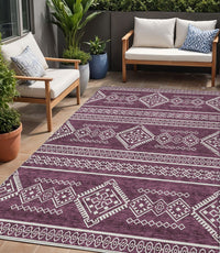 5' X 8' Eggplant And Ivory Southwestern Washable Indoor Outdoor Area Rug