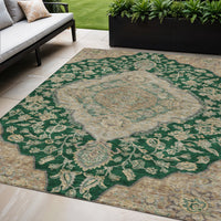 5' X 8' Emerald Beige And Brown Oriental Washable Indoor Outdoor Area Rug
