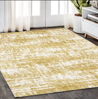 Set an inviting tone in your space with this 5-foot x 8-foot gold abstract power loom area rug. This rectangle shaped rug features a abstract design in gold to give it visual interest. A classic shape marries with good looking design for your space ideal for spaces with kids and pets, this rug is stain resistant to help repel stains and spilled liquids. Area rugs help to give warmth and sense of home to your space. 62.99-inch H x 90.55-inch W x 0.98-inch D