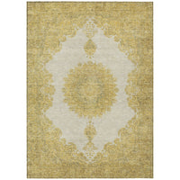5' X 8' Gold And Ivory Oriental Washable Indoor Outdoor Area Rug