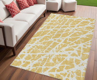 5' X 8' Gold And White Abstract Washable Non Skid Indoor Outdoor Area Rug