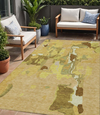 5' X 8' Gold Brown And Green Abstract Washable Indoor Outdoor Area Rug