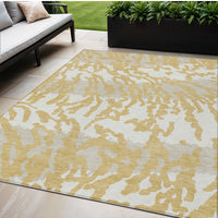 5' X 8' Gold Gray And Ivory Animal Print Washable Indoor Outdoor Area Rug