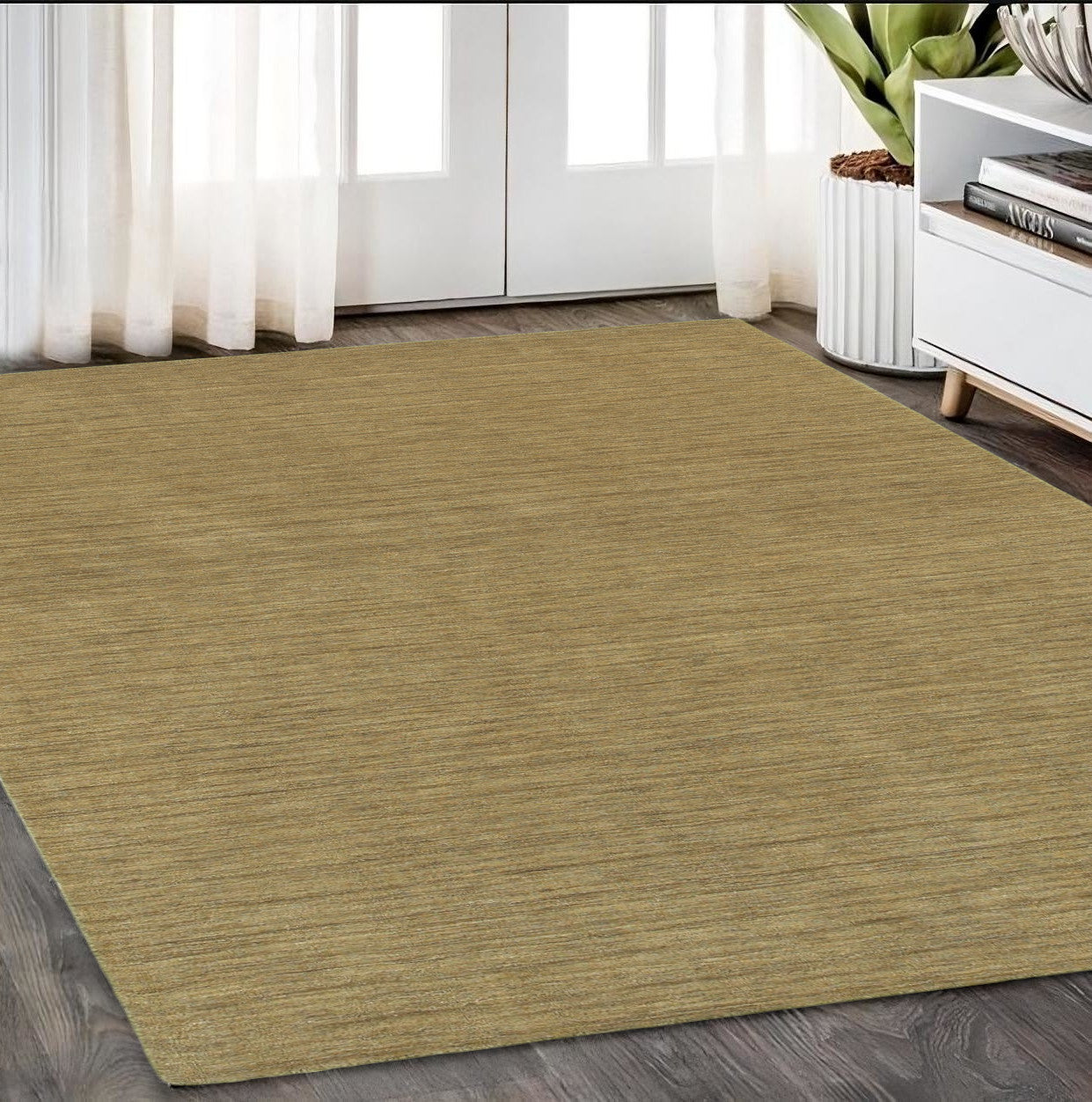 Add some artistry to your room with this 5-foot x 8-foot gold wool hand tufted area rug. This rectangle shaped rug flaunts a gold color that will be a great way to accent your space. Solid colors are versatile and will blend with any existing decor style. Place this area rug against a hardwood or tile floor and it will enliven your living space with style and sophistication. 59.84-inch H x 96.06-inch W x 0.59-inch D