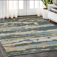 5' X 8' Gray And Blue Wool Abstract Hand Tufted Area Rug