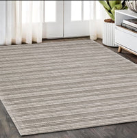 Add some artistry to your room with this 5-foot x 8-foot gray striped hand tufted area rug. This rectangle shaped rug features a striped design in gray to give it visual interest. A classic shape marries with good looking design for your space the coloring of this rug adds a delightfully neutral tone to your home and will easily match with most any decor. Place this area rug against a hardwood or tile floor and it will enliven your living space with style and sophistication. 59.84-inch H x 95.67-inch W x 0.47-inch D
