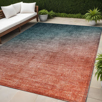 5' X 8' Gray And Red Orange Ombre Washable Non Skid Indoor Outdoor Area Rug