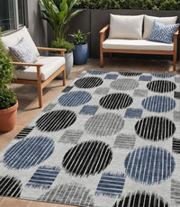 5' X 8' Gray Black And Blue Geometric Washable Indoor Outdoor Area Rug