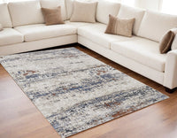 5' X 8' Gray Blue and Ivory Abstract Power Loom Area Rug