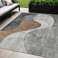 5' X 8' Gray Charcoal And Brown Abstract Washable Indoor Outdoor Area Rug